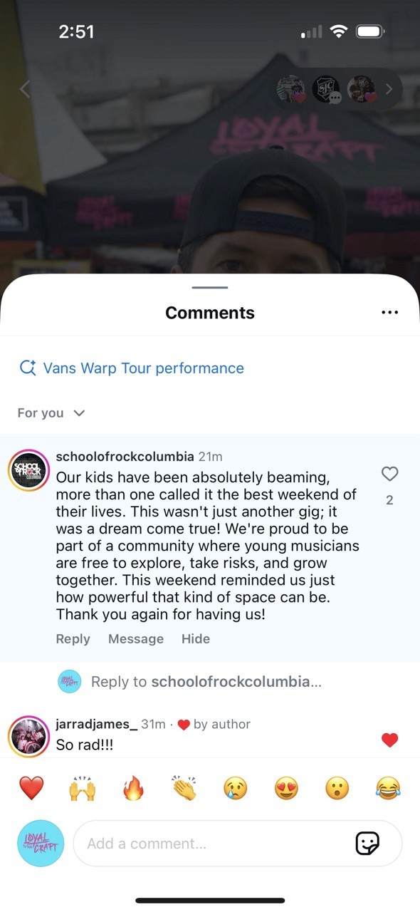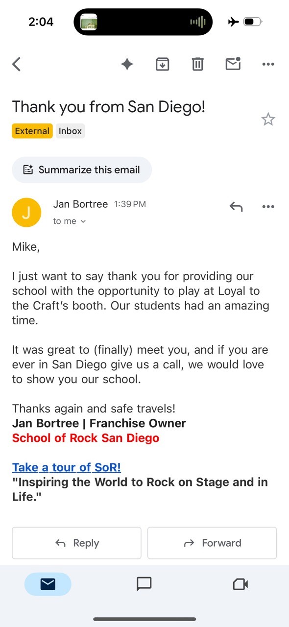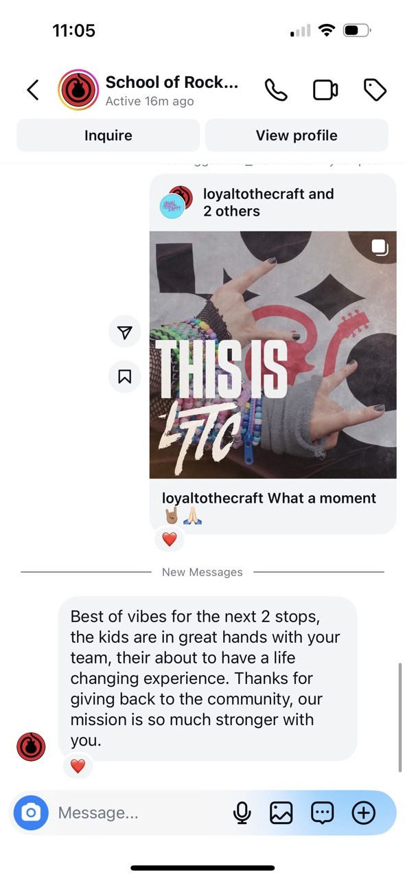 "Mike Ciprari’s dedication to inspiring and motivating the next generation through the Loyal to the Craft Tour has left a lasting imprint on young musicians at School of Rock. His genuine passion, hands-on mentorship, and commitment to providing practical tools and meaningful resources have empowered countless kids to embrace their talents, pursue their dreams, and believe in their own potential—both on stage and in life."